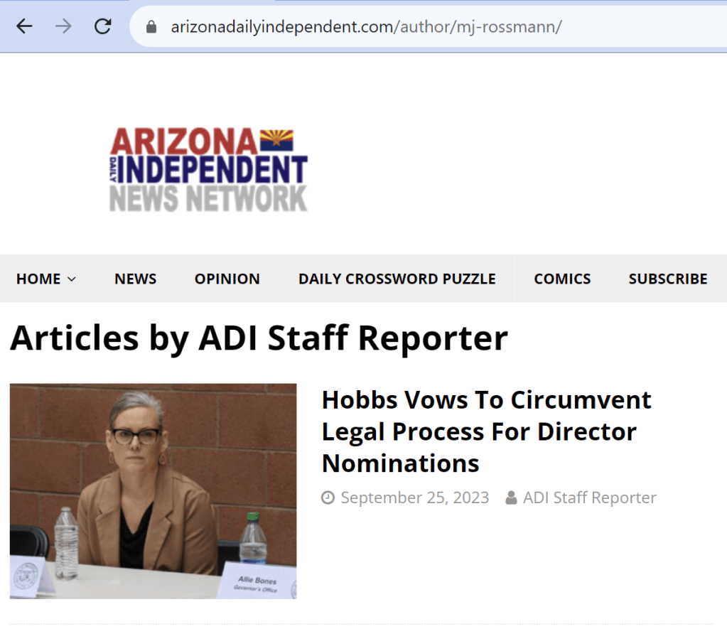 - 2 Journalist Expertise: All news stories in particular are written under the name ADI Staff Reporter without credentials displayed. However, if you click on that name, the URL changes which hints that the author might be MJ Rossmann (below). I was unsuccessful at locating any further information about this individual on the web. Opinion pieces are written by different authors.