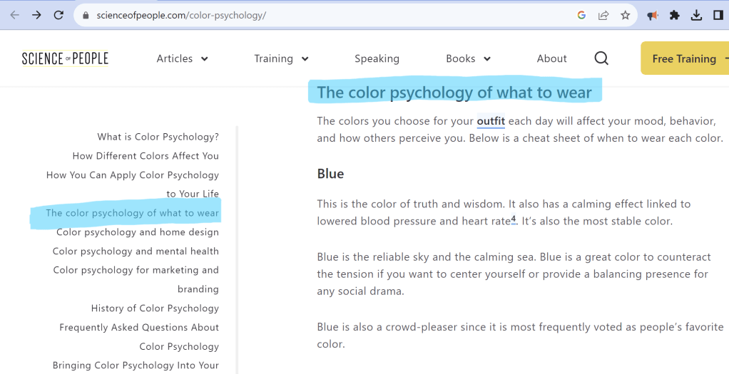 Section titled The color psychology of what to wear explains how different colors do matter. #7 Dig deeper