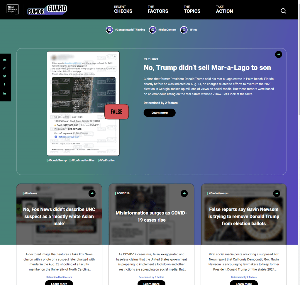 Out of several colorful ways to educate the public, News Literacy Project‘s RumorGuard & Harmony Square are especially special educational tools that share the same purpose in denouncing misinformation.