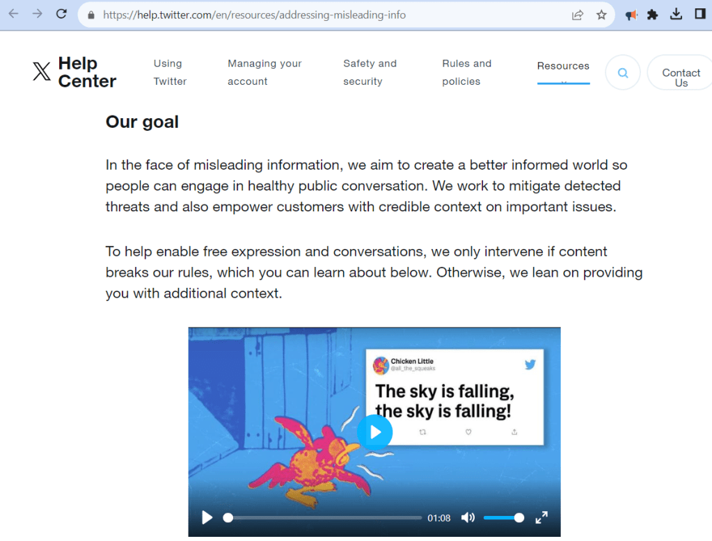 X makes efforts to curb misinformation under their Crisis misinformation policy, from August 2022, “We will take action on accounts that use X’s services to share false or misleading information that could bring harm to crisis-affected populations.” During times with dire situations at hand, it is especially important that incorrect information is demolished before it spreads any further. For example, it would be against X’s policy for a user to claim vaccines will result in being plagued in bad luck and will leave your bloodline cursed for generations as jest.